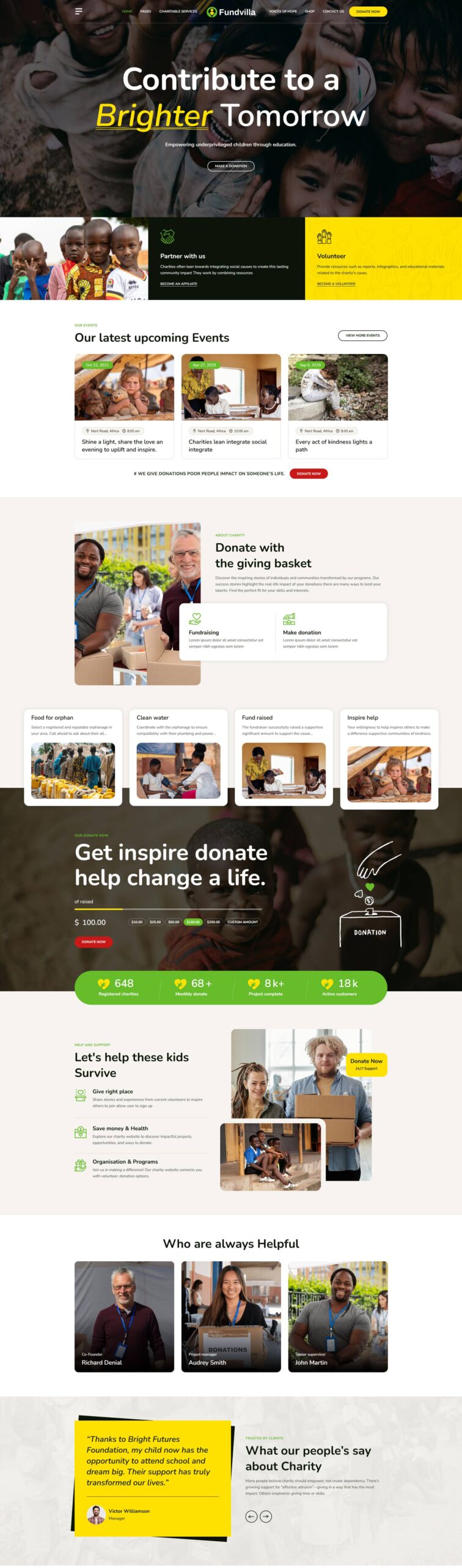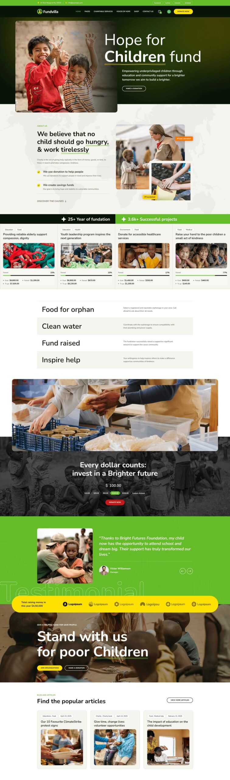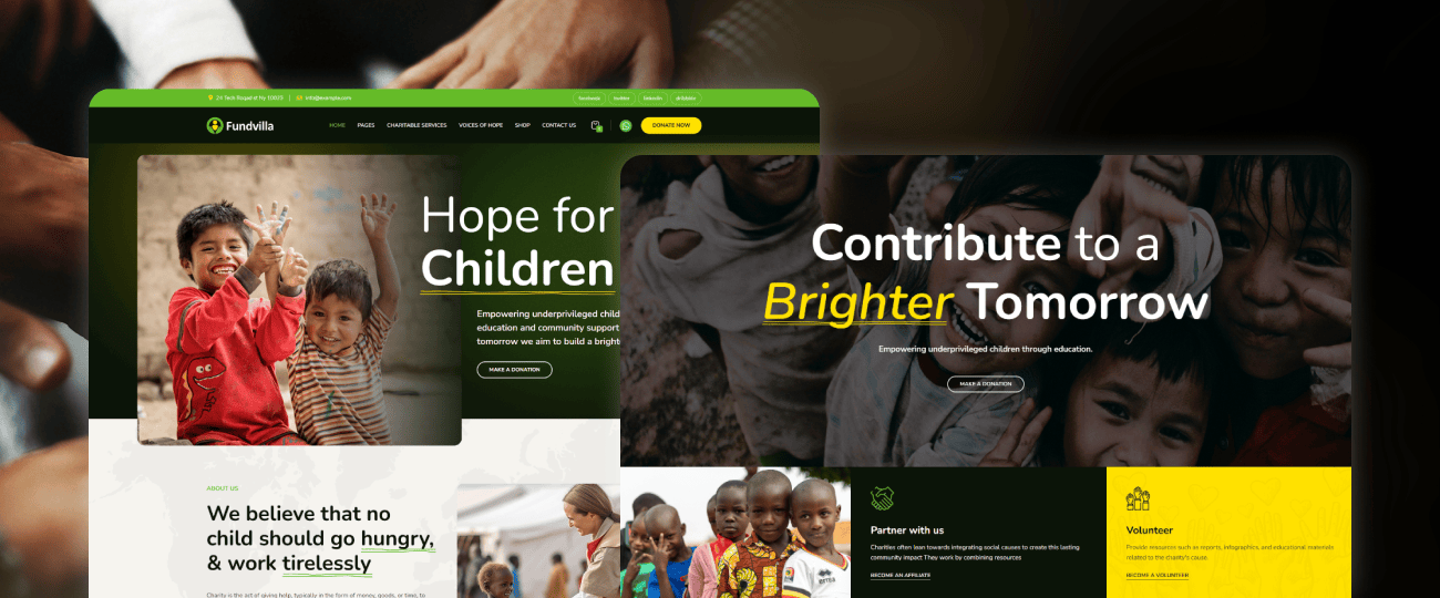 Empower your fundraising goals with a Fundvilla theme made for non-profits featuring donation