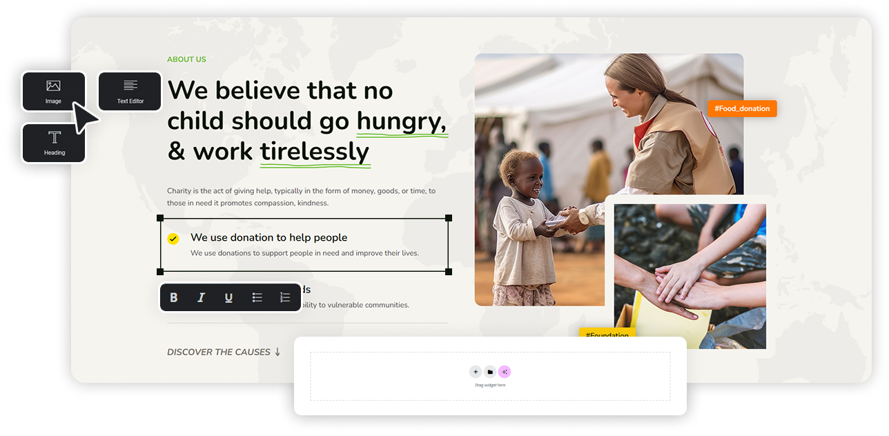 Easily manage and display key content like causes, donations, events, volunteers, and testimonials—each with flexible layouts and customization options to suit your organization’s unique needs.