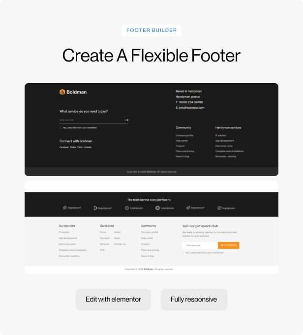- Footer elementor builder