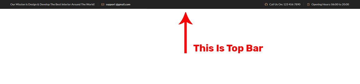 Topbar is a shortcut info bar for your clients. You can provide email address or your phone number here so visitor can contact you instantly. Also you can show social icons here.