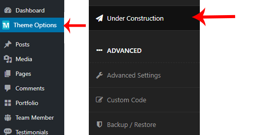 The Inoterior theme comes with built-in Under Construction mode so you don't need to install any other plugin for it. You can enable it from here. You can change text and background settings from here. Here are steps: