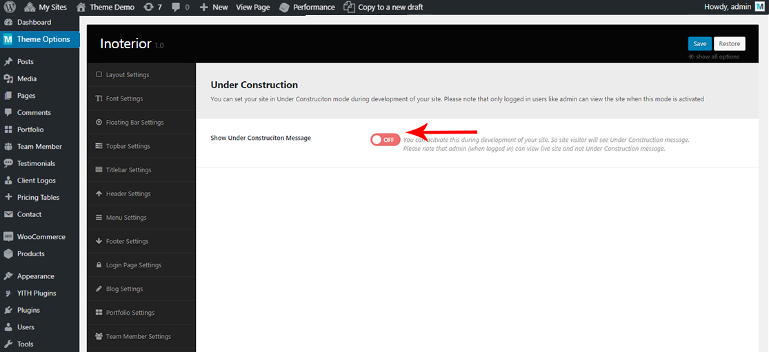 You can customize Inoterior settings via "Inoterior Options". You can upload logo or change skin color etc. Here are details of each section that you can customize.